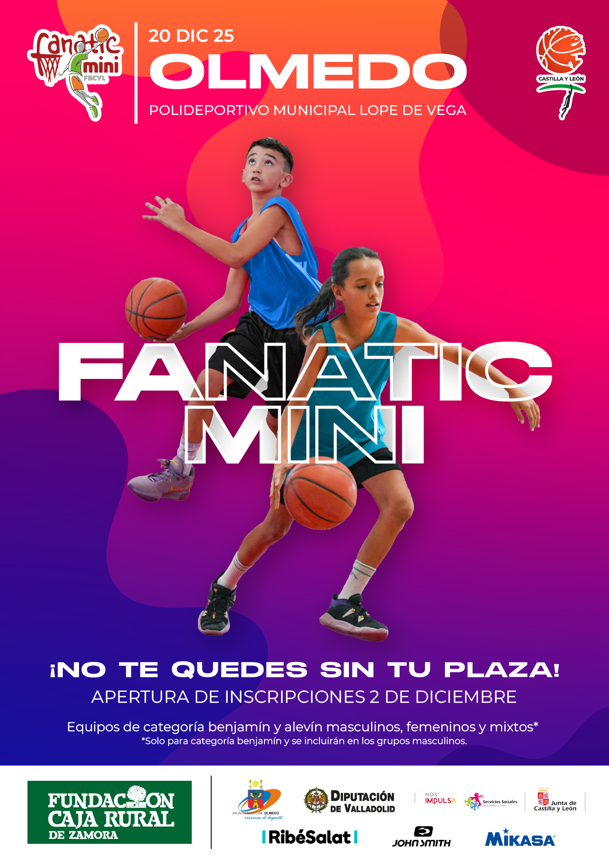 El Fanatic Mini de Olmedo se celebrará el próximo 20 de diciembre en el Polideportivo Municipal Lope de Vega (Avenida Lope de Vega s/n), y reunirá a 41 equipos de toda la comunidad de Castilla y León, convirtiendo a la localidad vallisoletana en punto de encuentro del baloncesto mini autonómico.